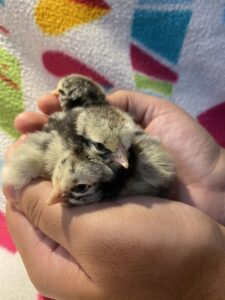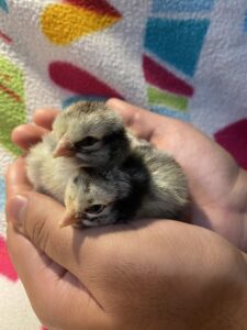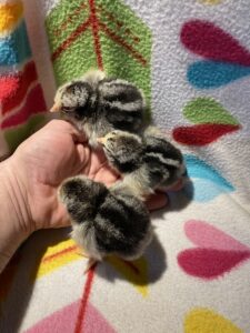 This was the first breed we incubated and fell in love with. An interesting fact: when our first chick hatched, we happened to be wearing a blue nurse outfit. Ever since then, she has been drawn to the color blue!